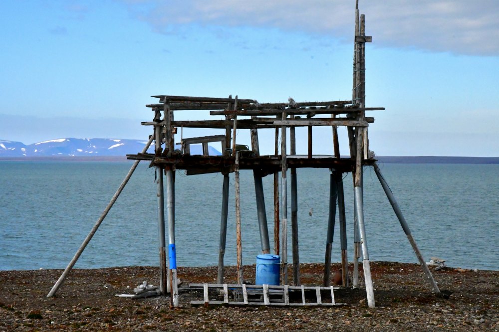 La plate-forme où on stocke la viande de phoque et de renne hors de portée des ours très nombreux dans le coin. Ne pas oublier de descendre l'échelle!
