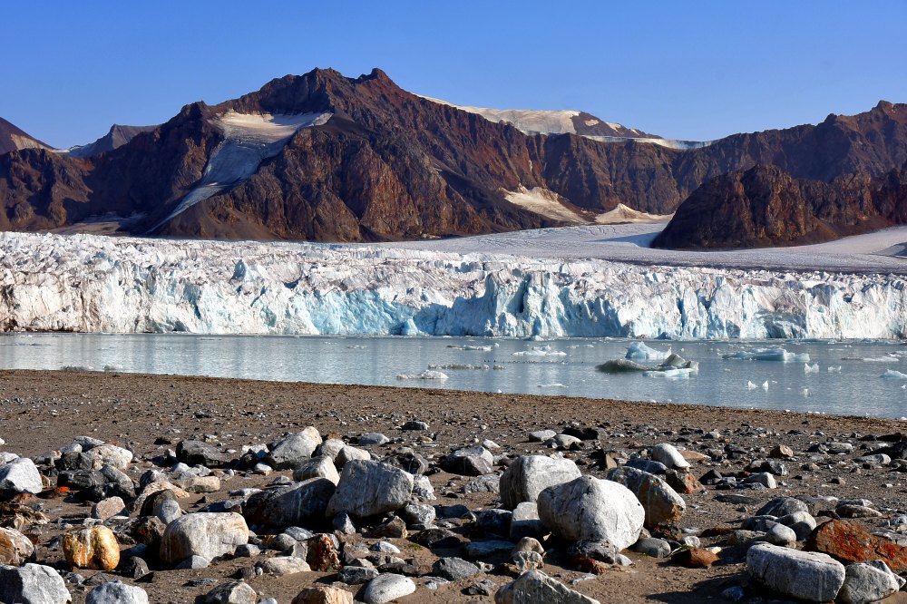 Les rochers laissés sur la plage par le recul des glaces témoignent de la puissance d'érosion des glaciers.