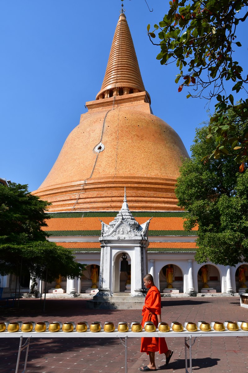 L'histoire de la ville remonte à 150 av J-C. Elle a prospéré entre le VI et le XI siècle et est considérée comme le berceau du bouddhisme thaïlandais. Vingt-quatre petits pavillons abritant chacun une cloche, entourent le chedi.