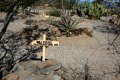L'ancien cimetière de la ville de Tombstone fut ouvert en 1878. On lui donna le nom de “Boot Hill” car il devait recevoir les corps des cowboys tués en ville et qu'on enterrait “dans leurs bottes”. Six ans plus tard, il était plein. On le ferma et on l'oublia. Il fut redécouvert beaucoup plus tard et, avec l'aide des registres de la mairie, on identifia les tombes. On replanta les croix faites en tubes. On remit des pancartes semblables aux originales avec les textes et les commentaires ironiques de l'époque. L'humour noir du cimetière de Tombstone n'avait rien de politiquement correct.
