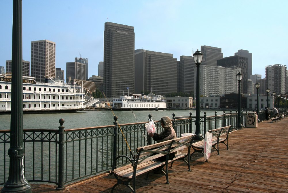 Fishing on Pier 9 in front of the Financial District.
