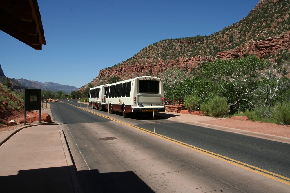 D'immenses parkings ont été aménagés à l'entrée du parc. On n'a pas mégoté sur la taille mais le savoir-faire américain a fait des miracles : ils sont invisibles si on n'est pas dedans. Une fois la voiture au parking, une allée vous mène jusqu'à un terminal où se trouvent des navettes gratuites. Il n'y a pas d'attente. Elles suivent des circuits et desservent les points d'accès aux départs des randonnées. A partir de là les choses sont comme dans le passé.