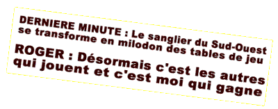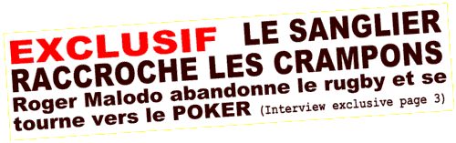Vous m’avez reconnu. Je suis Roger Malodo, le sanglier du sud-ouest, vedette internationale de rugby. Après la dernière tournée triomphale de mon club j’ai décidé de mettre fin à ma carrière.