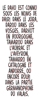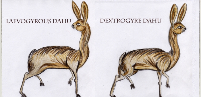 L'existence du dahu est généralement évoquée en milieu rural comme représentant typique de la faune montagnarde ou plus rarement forestière. Il s’agit d’un animal sauvage des zones montagneuses, biotope qui a influé sur son évolution physique au fil des générations, le dahu possédant des pattes plus courtes du côté de la pente où il évolue. Il existe ainsi deux sous-espèces de dahu : le dextrogyre dont les pattes les plus courtes sont à droite et le lévogyre dont les pattes les plus courtes sont à gauche.