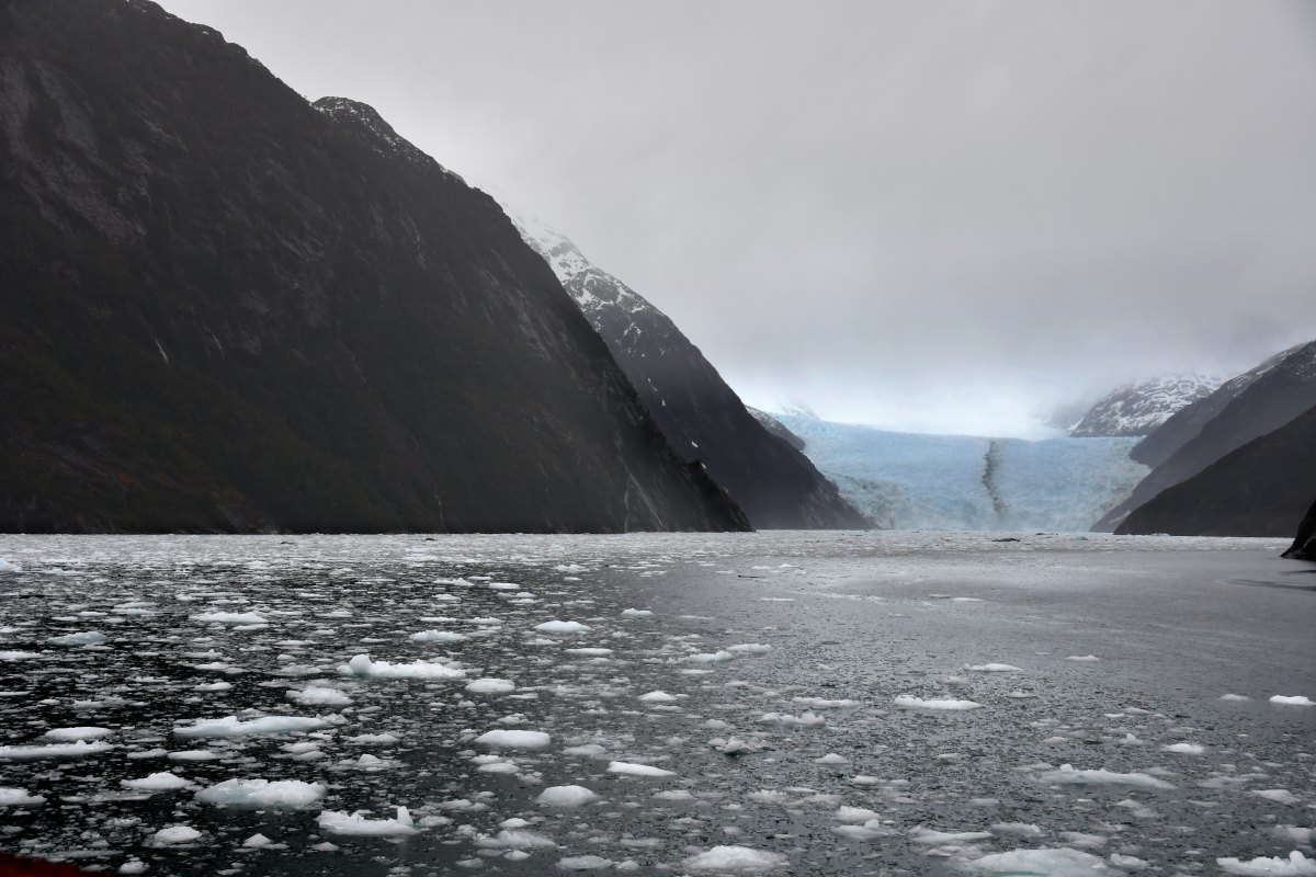 des îles du sud, le glacier Garibaldi est entouré de forêts qui s'accrochent à flanc de montagne.
