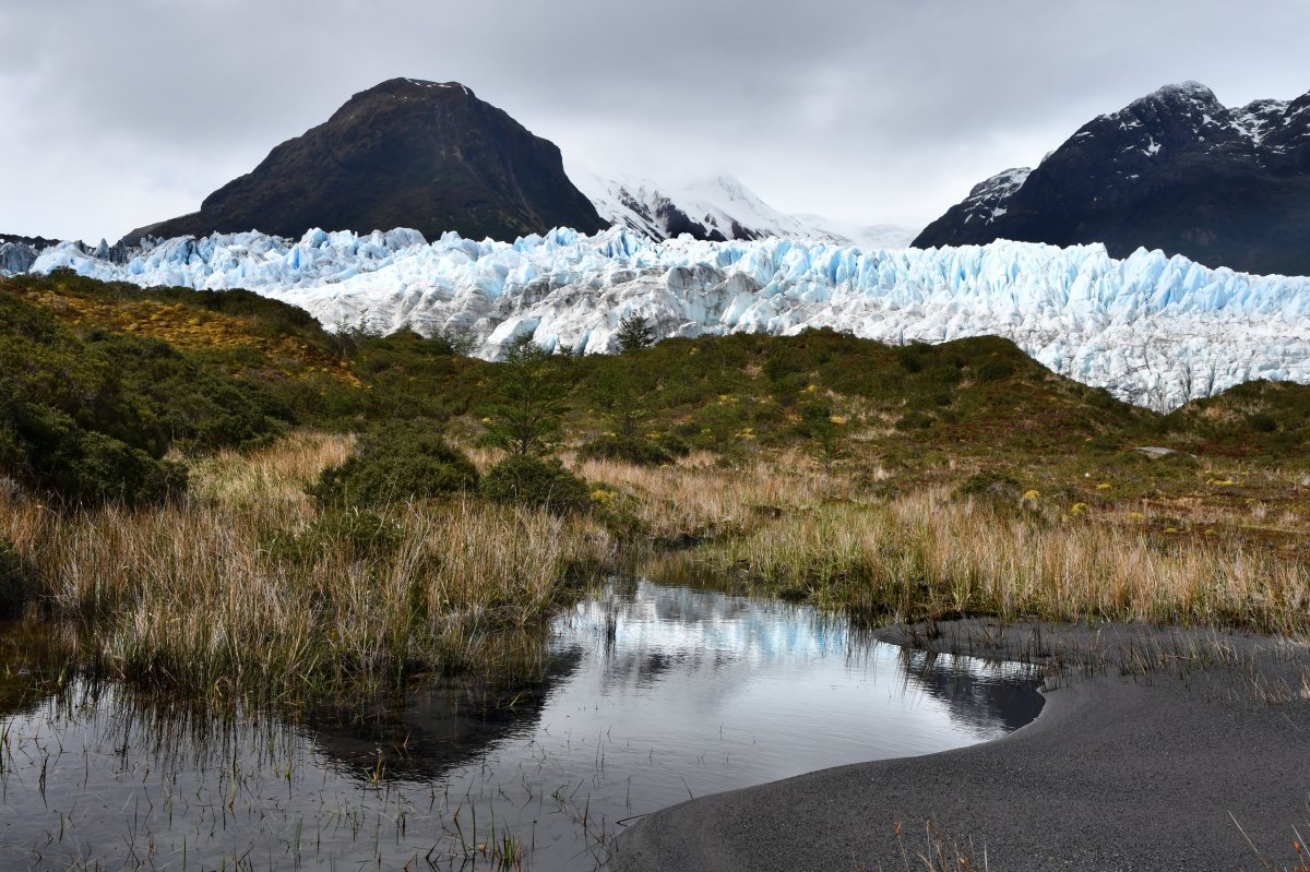 On peut s'approcher du glacier à travers les buissons et les rochers de la moraine.