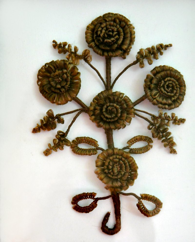 Fleurs faites en cheveux humains. Sigridur Salvarsdottir a appris dès l'âge de 9 ans l'art du Skiliri. Revenue sur l'île en 1985, elle a continué à utiliser cheveux, crins et soie pour réaliser ces créations étonnantes.