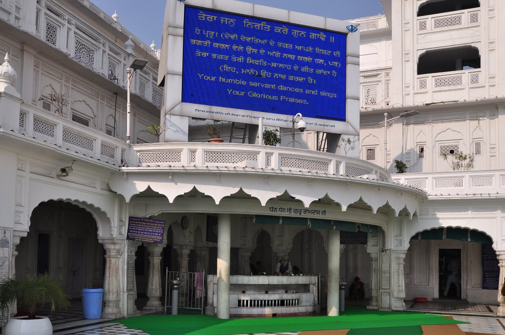 chantent les versets du livre sacré tout au long de la journée, les textes sont affichés en plusieurs langues sur de grands panneaux lumineux.