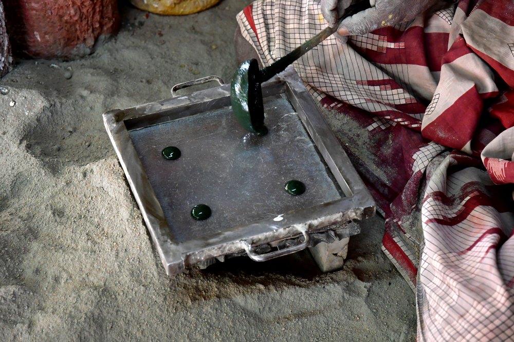 On peut aussi donner place à la créativité et ne pas utiliser de gabarit. Ici, l'artisan pose des touches de vert sombre.