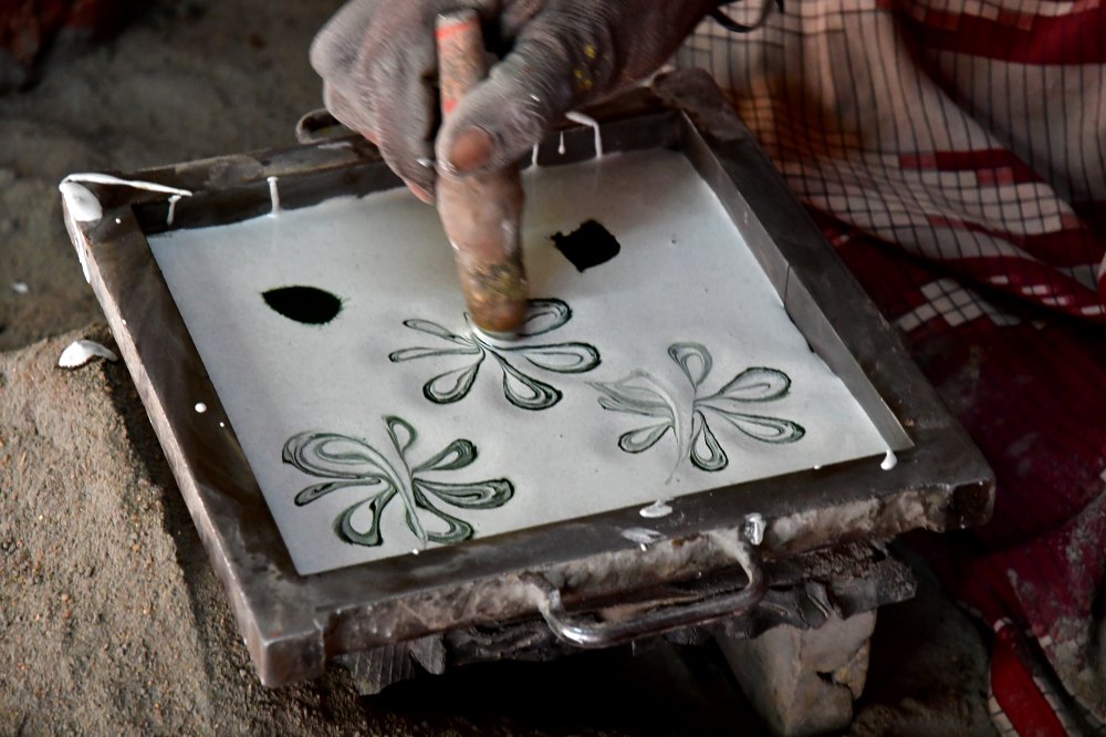 L'artisan dessine à main levée, selon son inspiration.