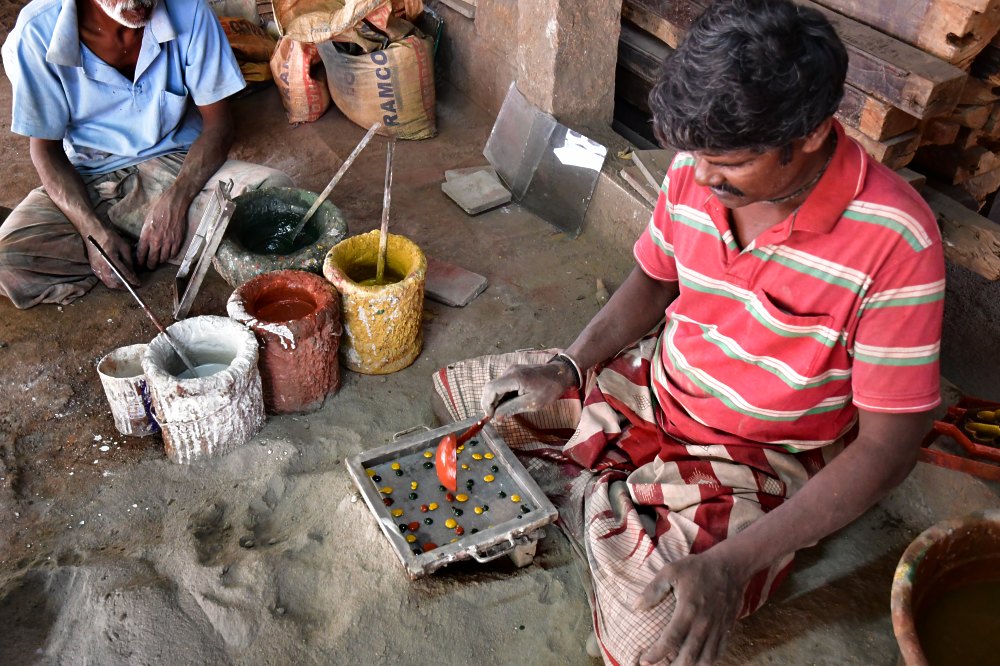 Autre démonstration. Cette industrie artisanale a été mise en place à Aathangudi au siècle dernier.