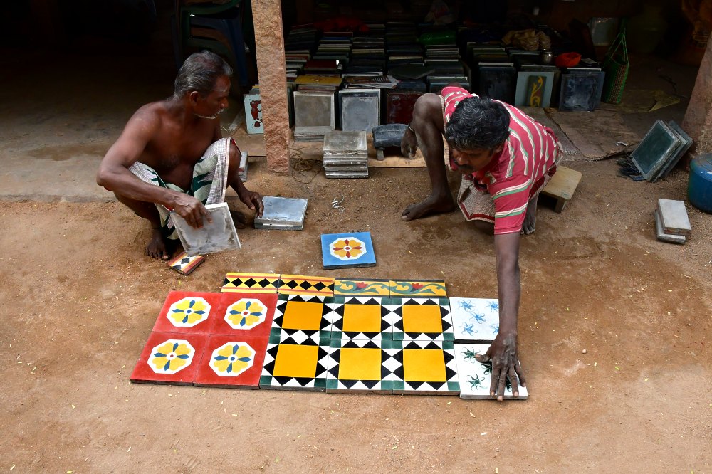 Malgré leur absence de cuisson, les dalles de ciment sont très résistantes et on les trouve dans toutes les maisons de la région.
