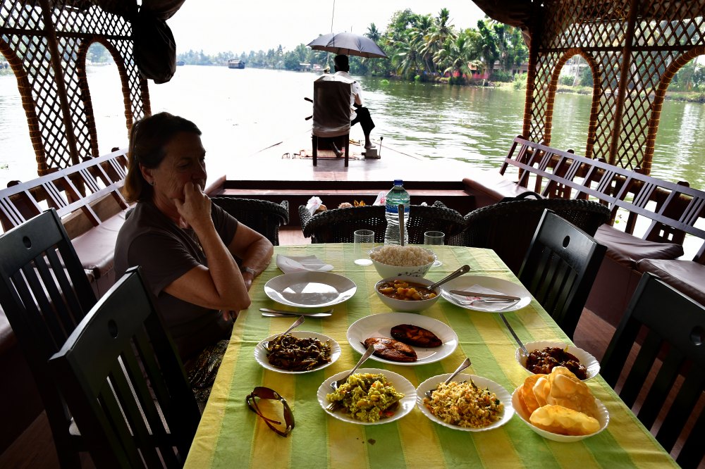 Un déjeuner à bord d'une maison flottante sur les Backwaters.