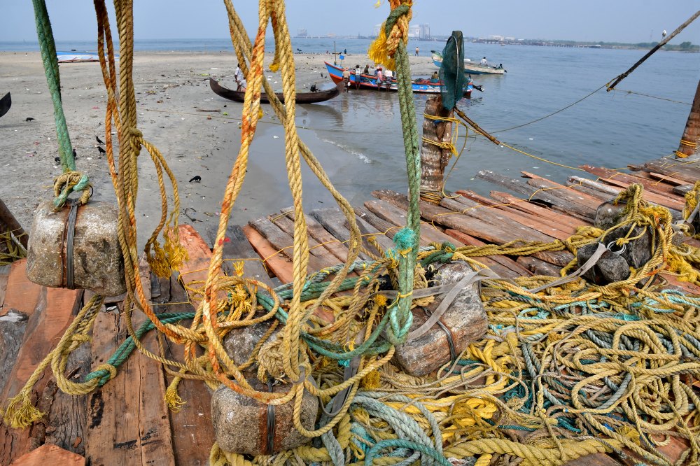 Au moment de relever les carrelets, les pierres servent de balanciers et facilitent la tâche.