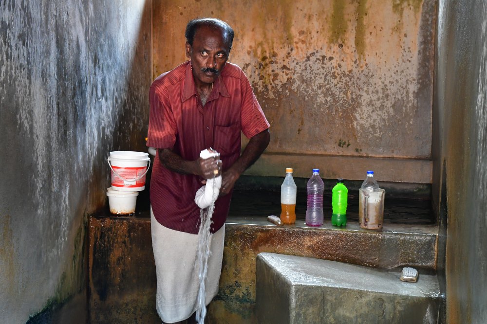 D'abord, on fait tremper le linge dans de l'eau avec du détergent. On bat les tissus épais sur les pierres. On utilise parfois de l'eau de Javel s'il y a des taches. Ensuite on rince deux fois à l'eau claire.