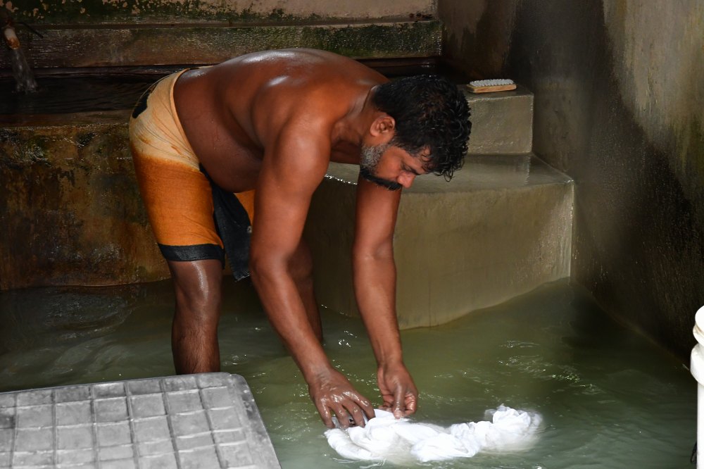 Chaque espace de lavage est attribué à une famille. Normalement personne d'autre ne peut utiliser cet espace. Les hommes lavent le linge.