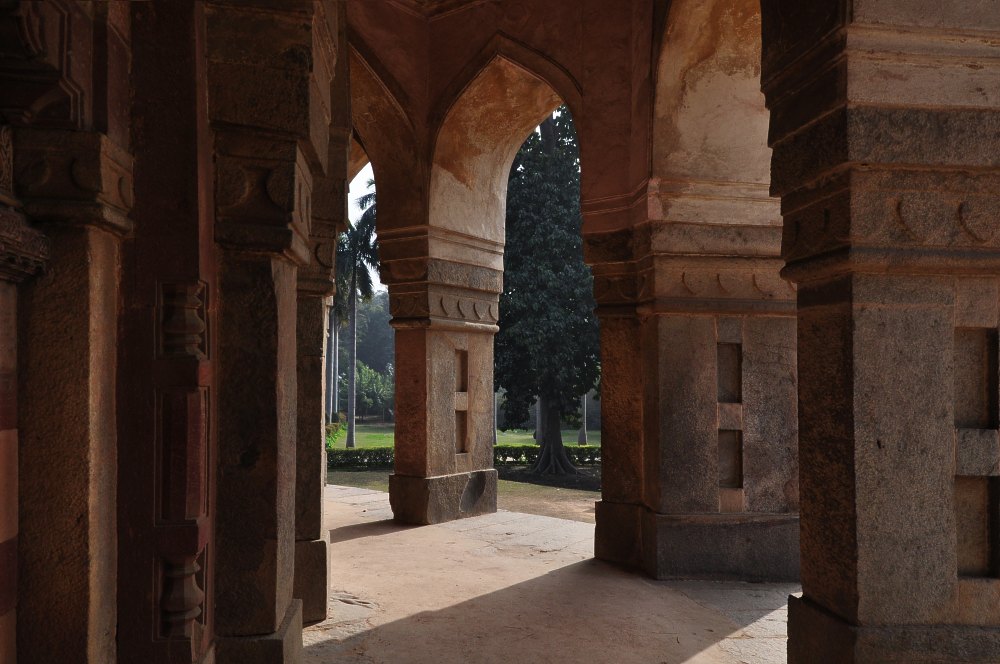 Sous les arcades qui entourent le tombeau de Muhammad Shad, troisième souverain de la dynastie Sayyid