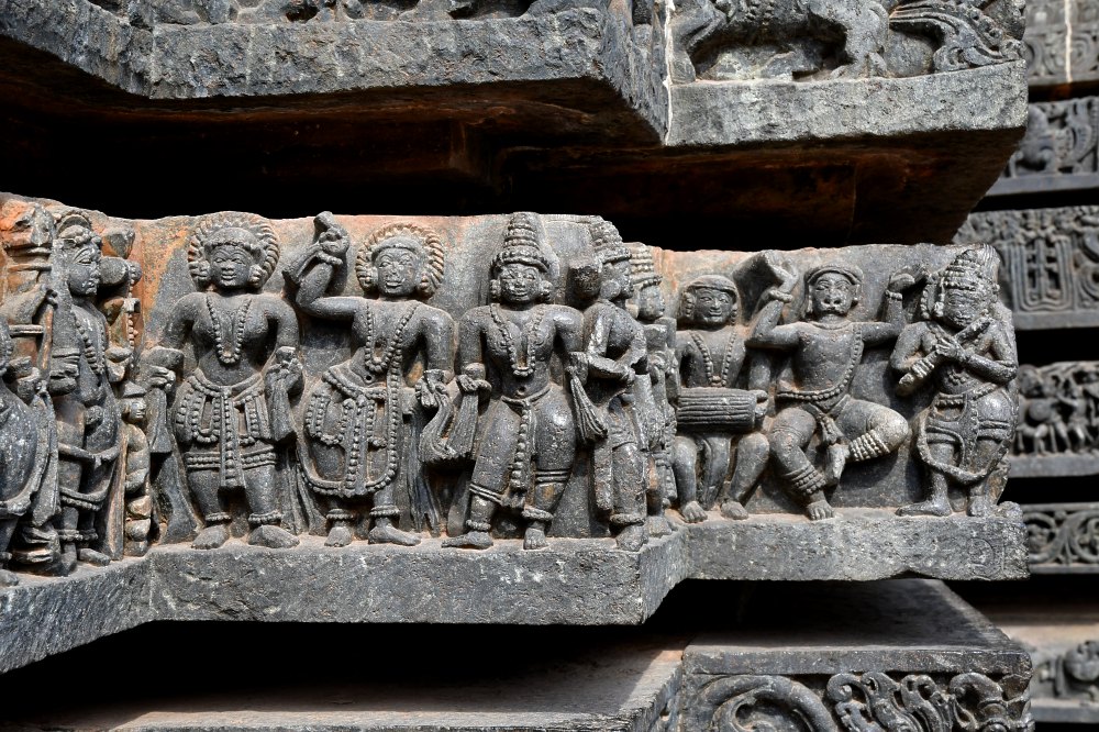 A mi-hauteur, des frises de danseuses et de musiciens viennent compléter le socle du temple.