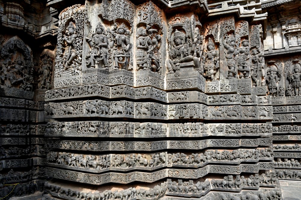La variété des frises d'éléphants, de lions, de chevaux et de guerriers, entrecoupées de lignes de fleurs et surmontées de panneaux représentant les dieux montre l'aboutissement de l'art de cette époque.