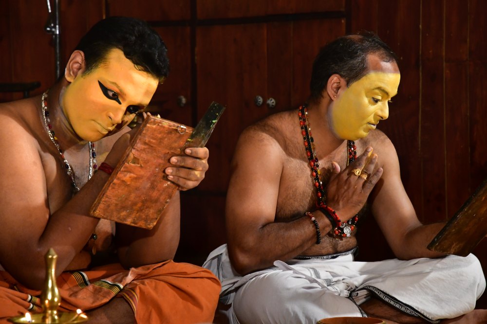 Normalement douze acteurs, quatre percussionnistes et quatre chanteurs composent la troupe.