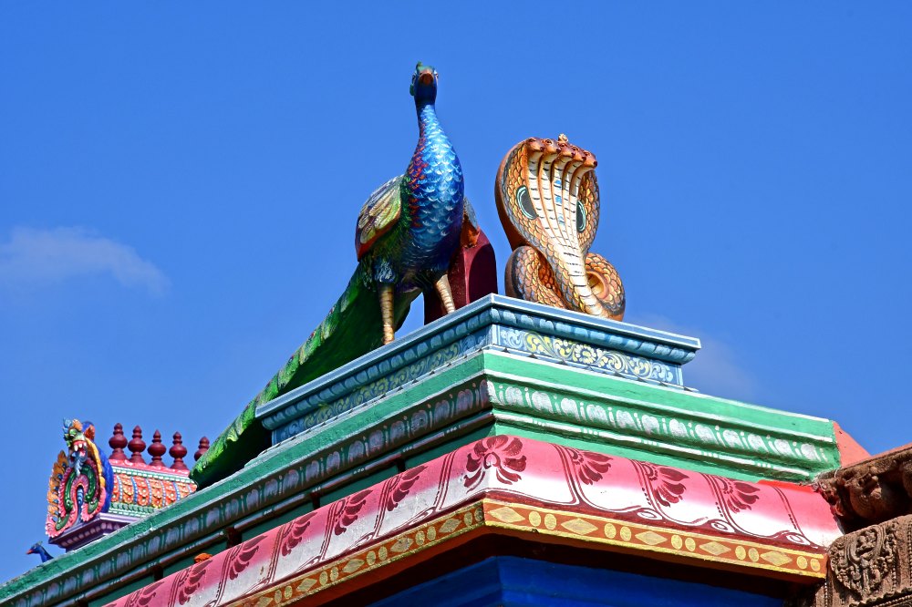 Selon les textes anciens, Shiva serait apparu sous la forme d'un paon à Shakti, l'épouse d'Indra dieu du paradis.