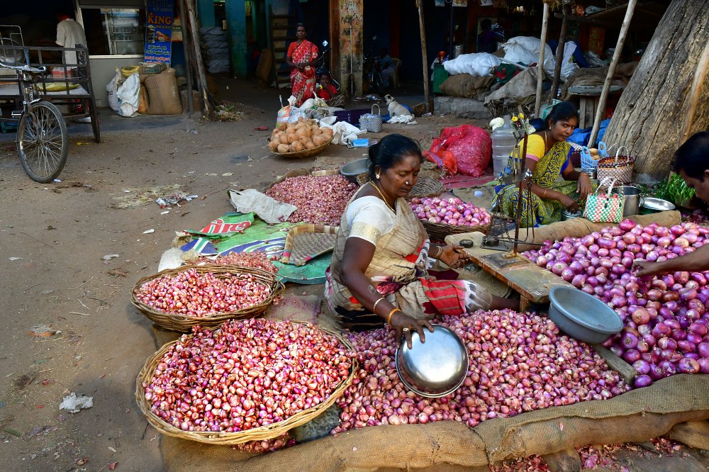 Des oignons à foison. Ils sont triés par taille pour faciliter la vente.