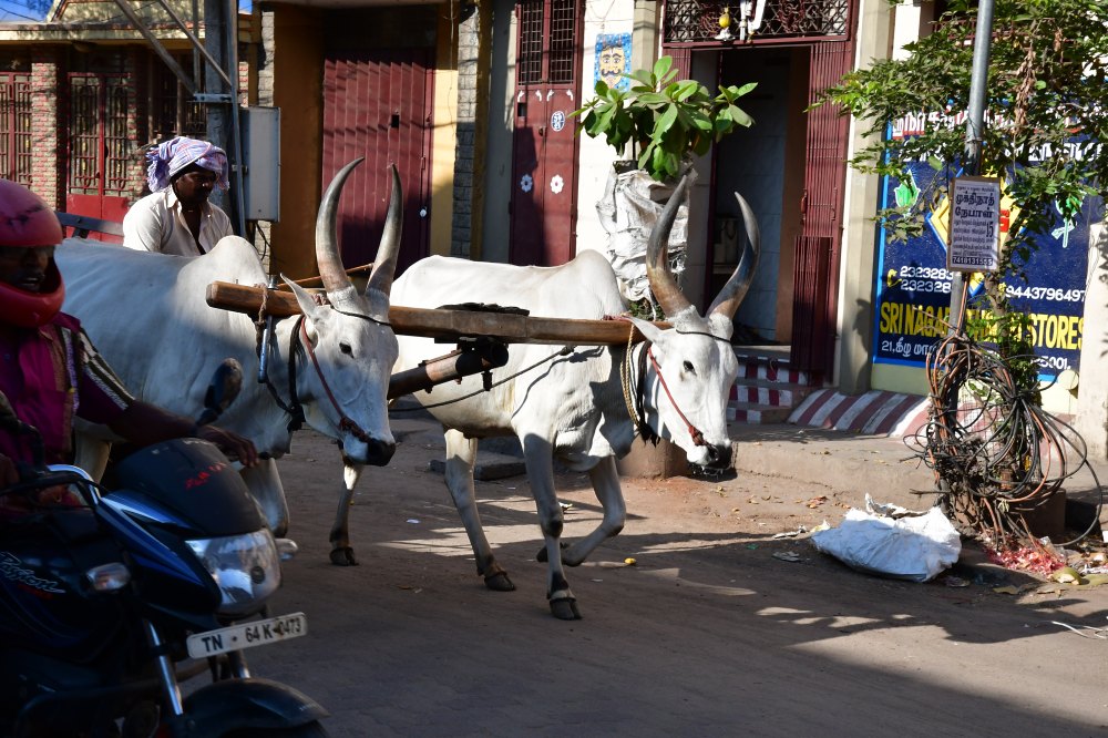 Madurai est la capitale culturelle de l'État du Tamil Nadu. On a beau être dans une ville de près d'un million et demi d'habitants, la campagne envahit les rues.