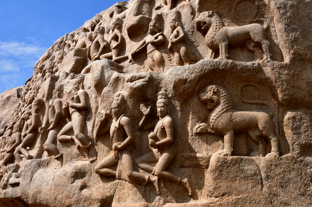 Quatre couples vont voir l'événement. Ils sont accompagnés de deux êtres anthropomorphiques, mi humains mi oiseaux, et de deux lions.