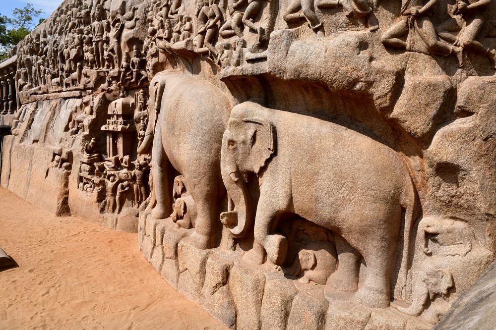 La sculpture des éléphants, presque de taille réelle, est une des plus belle de l'Inde.