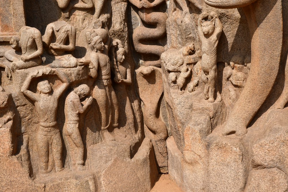Etonnante sculpture d'un chat dans une position d'ascèse. A ses pieds de petits rongeurs...