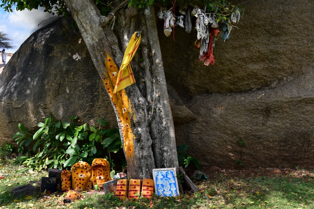 Non loin du Butter Ball, des petits autels improvisés demandent la protection de Nâga le dieu serpent. Les femmes suspendent des offrandes pour que leur mari soit protégé des morsures.