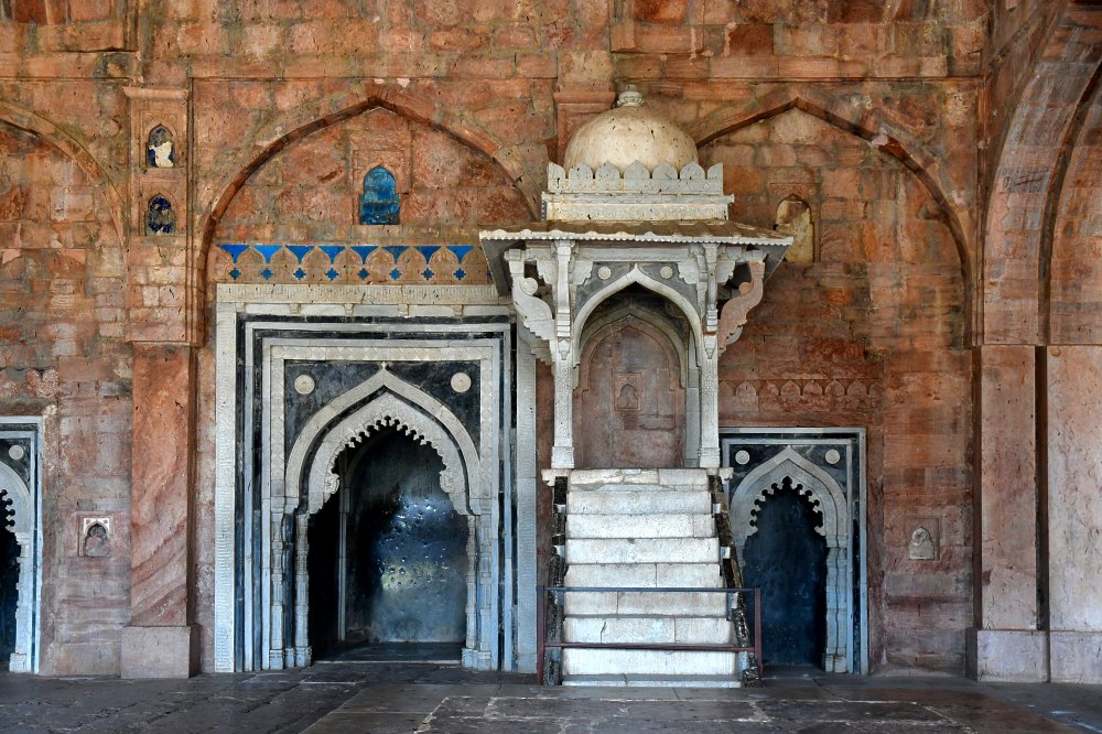 Le mihrab décoré avec deux colonnes et une arcature indique la qibla. C'est la direction de la kaaba à la Mecque vers laquelle les musulmans doivent se tourner pendant la prière.