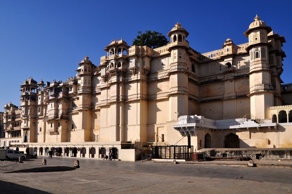 Vu de l’esplanade d’entrée, le palais ressemble à une pièce montée.