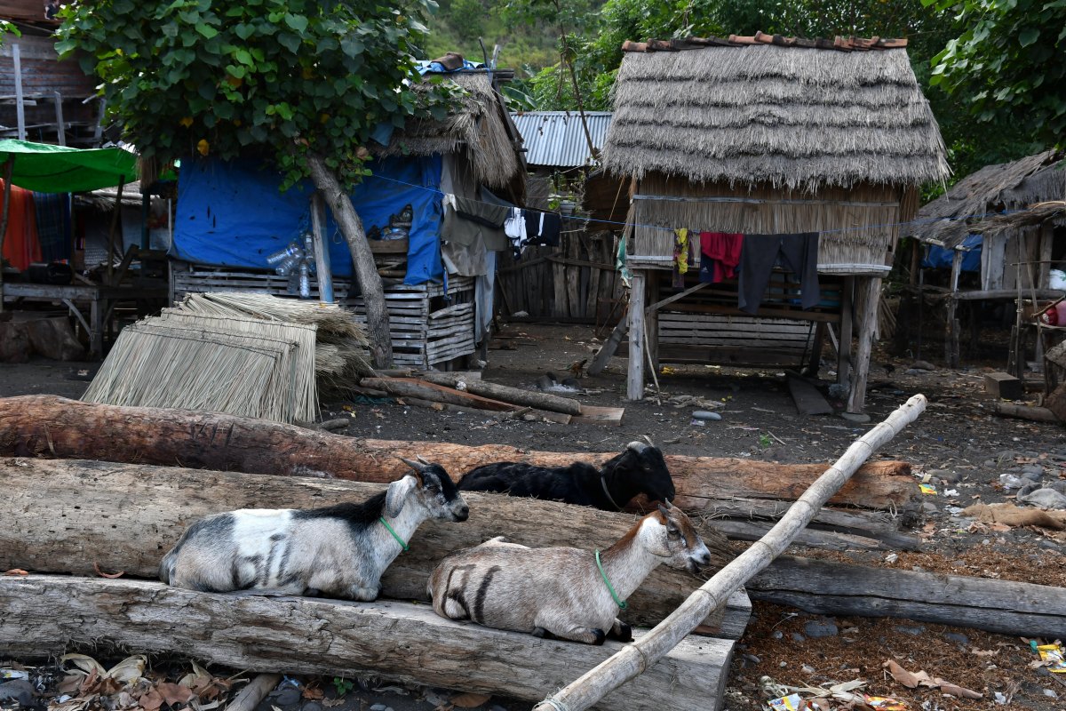 La nuit, les chèvres et la volaille dorment sous le plancher des maisons traditionnelles en bois.