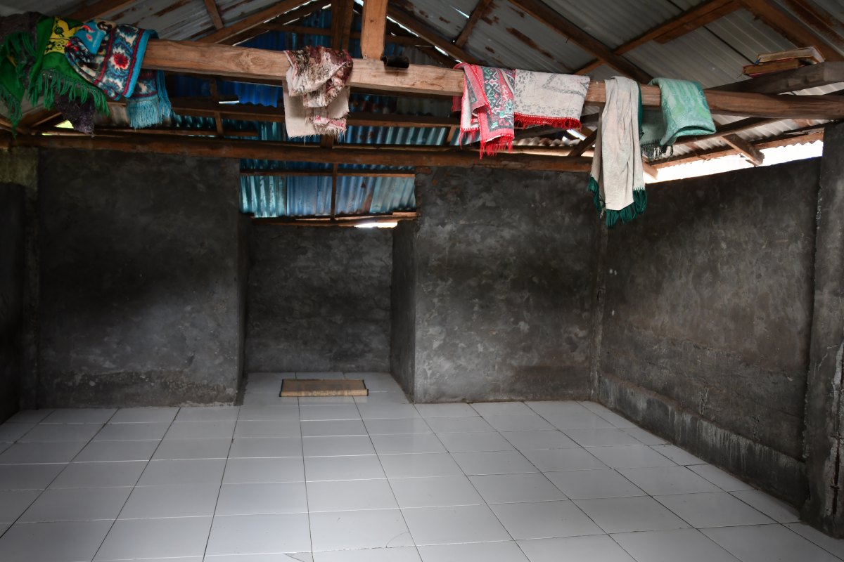Intérieur de la mosquée. C'est le seul bâtiment du village en dur (du béton).