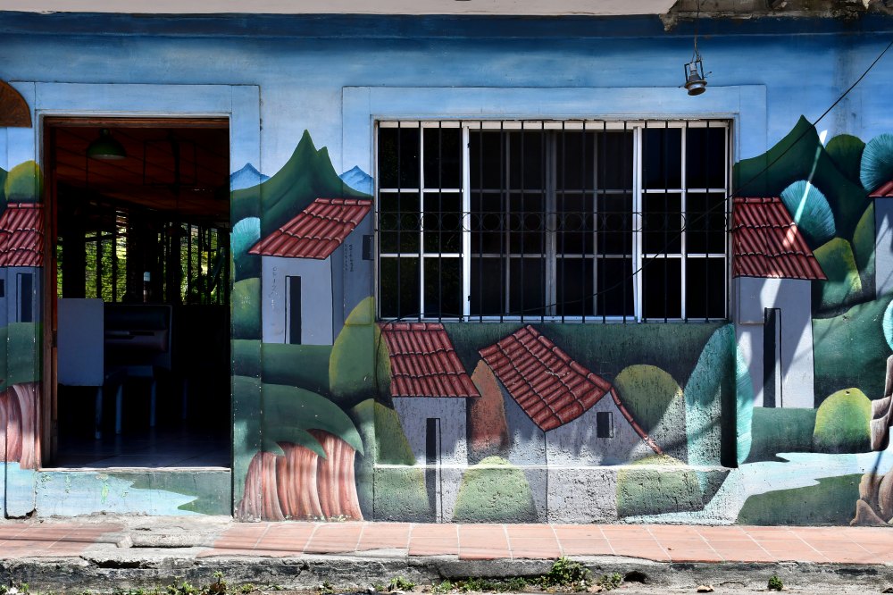 Les murs des boutiques sont peints comme dans la plupart des villages du pays.