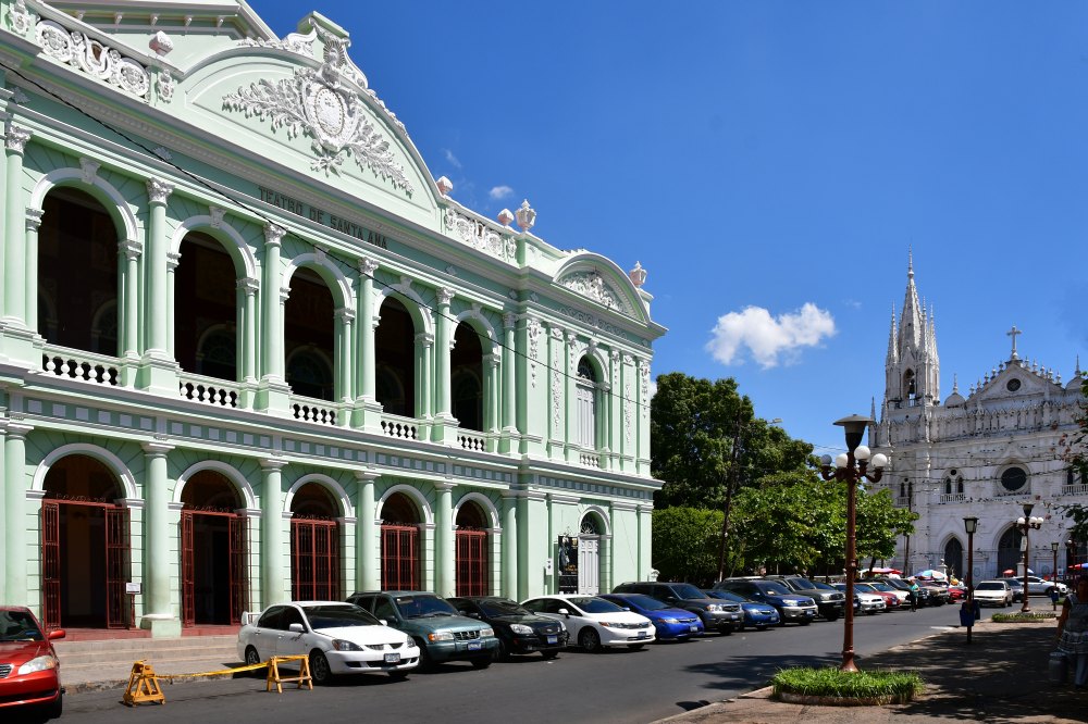Grâce aux plantations de café qui entourent la ville, Santa Ana était la ville la plus riche du Salvador au début du 20ème siècle. Cette richesse se voit encore aujourd'hui au travers de l'élégance de certains édifices de la ville, comme ici le Théâtre inauguré en 1910.
