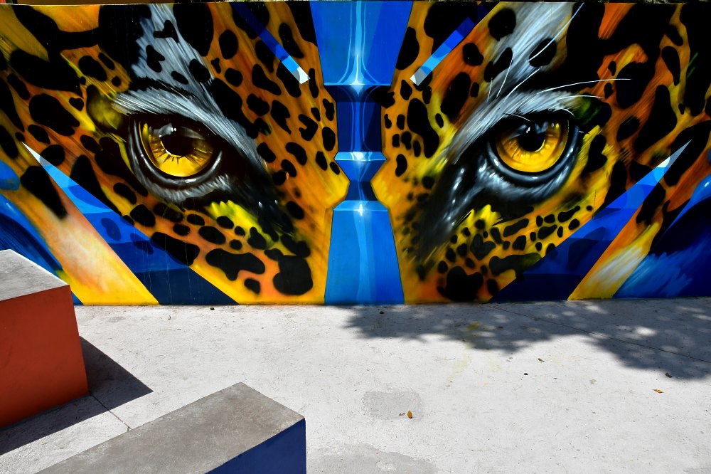 On trouve aussi dans le parc des fresques plus colorées et gaies, témoin du renouveau du pays.