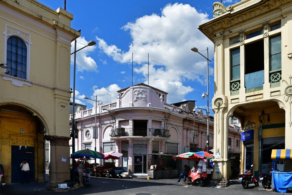 En raison des très nombreux et violents tremblements de terre qui ont secoué la ville au cours de son histoire, il reste peu de monuments anciens à San Salvador. Cette maison d'angle date de 1920.