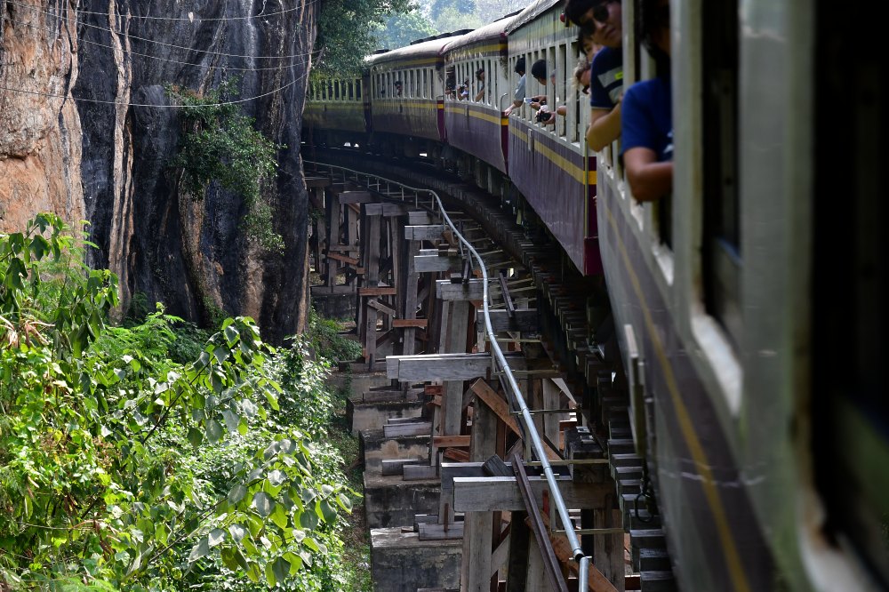 Le passage est étroit entre la falaise et l'eau en contrebas. C'est une section de la voie que les prisonniers ont dégagée une fois de plus au péril de leur vie.