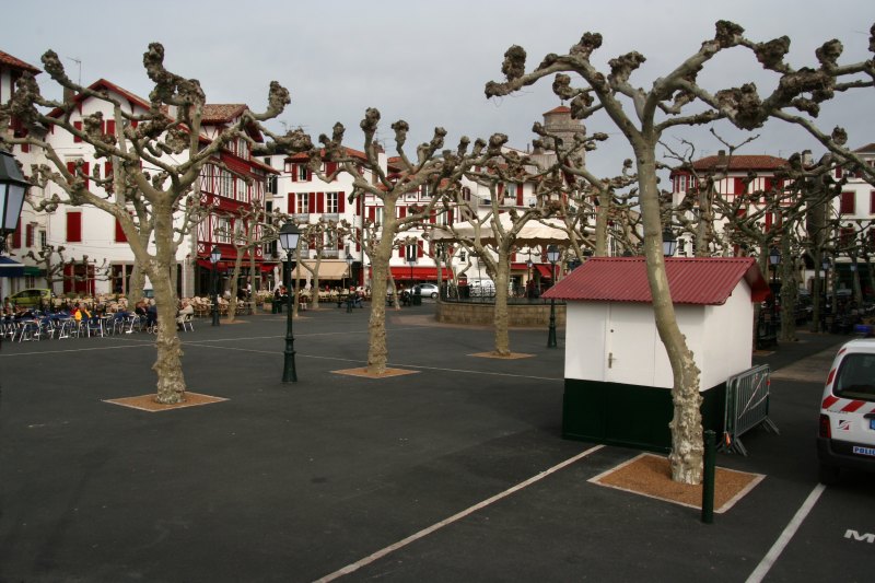 Place typique, avec platanes.