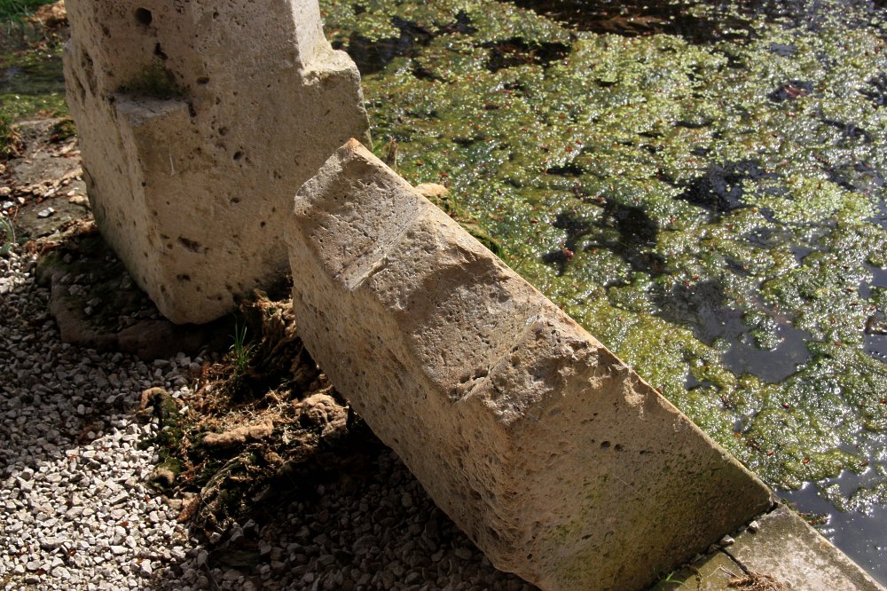 Reposoir de pierre avec emplacement pour les genoux des lavandières.