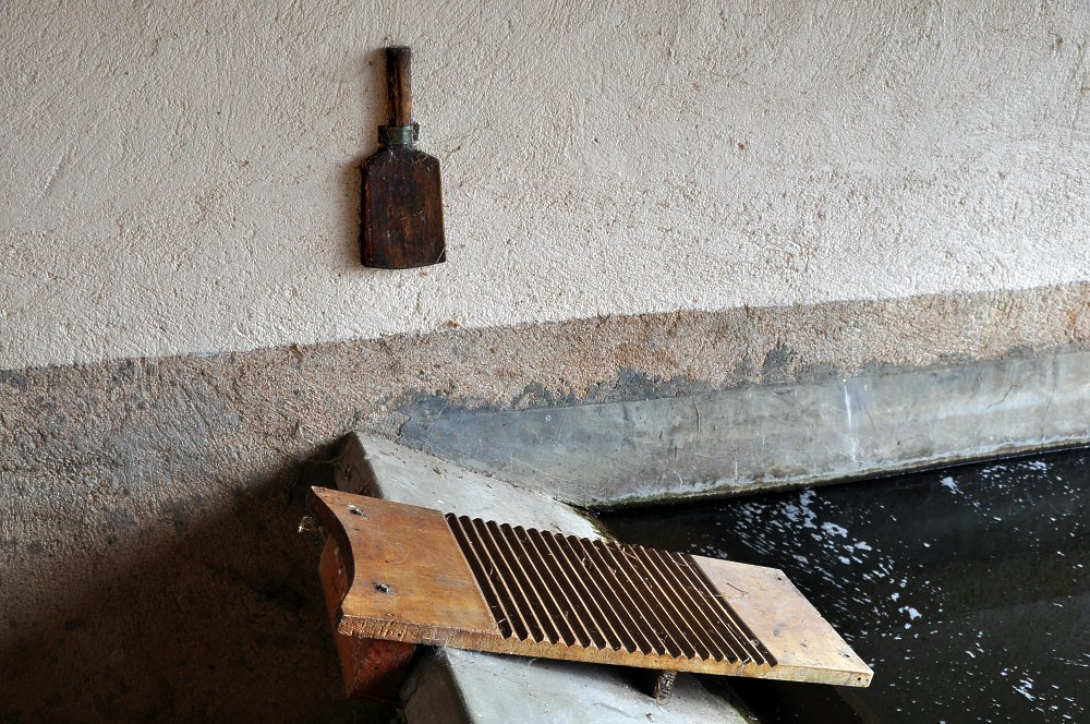 Battoir et une planche à laver.