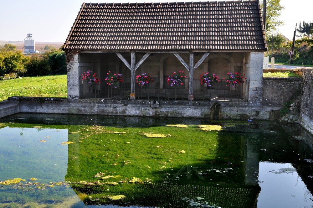 Petit lavoir fleuri à Coulon, sur la commune de Sementon, dans l’Yonne.