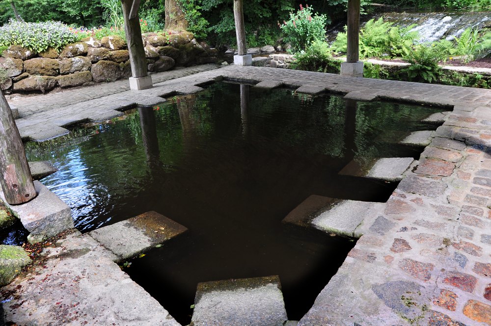 Lavoir couvert de Plouvara dans les Côtes d’Armors avec plans de lavage inclinés.