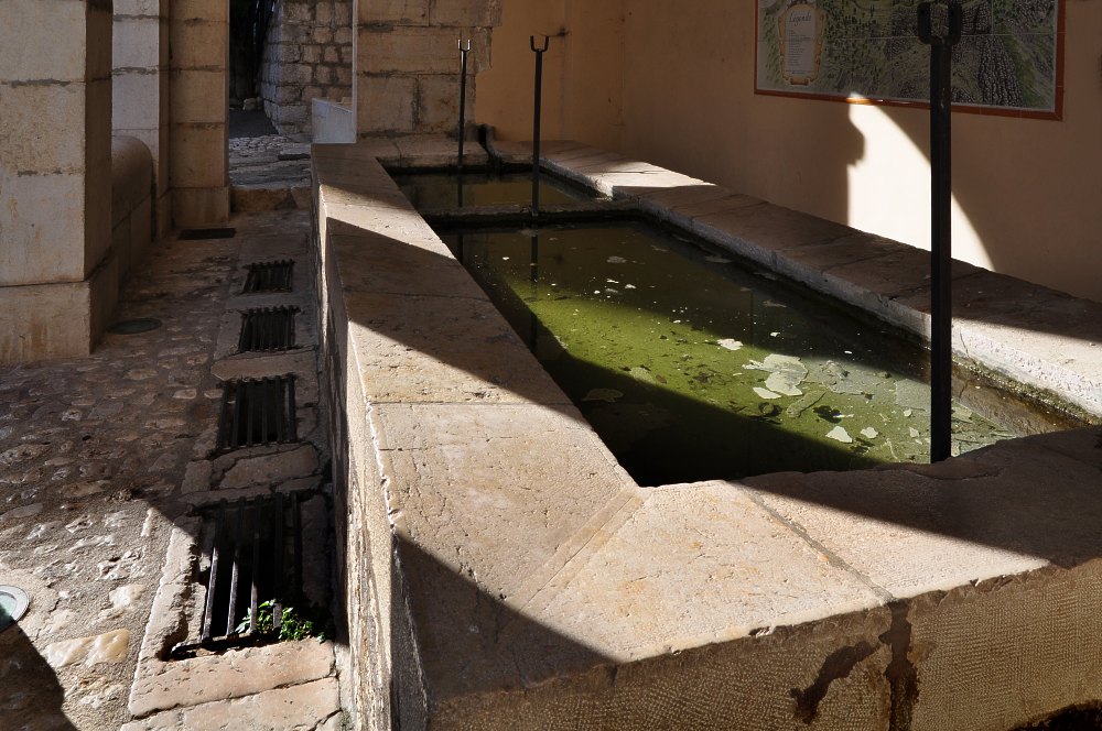 En plus du fait qu’il est protégé des intempéries, la lavoir de Gourdon est moderne. On n’y lave pas à genoux mais debout, contre le bassin. Les supports verticaux au centre du bassin supportaient une poutre sur laquelle les lavandières étendaient le linge afin qu’il s’égoutte.