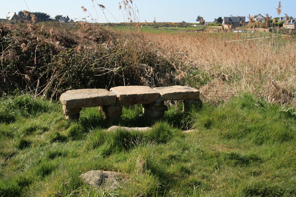 Table de lavage en granite rose sur l’Ile de Bréhat.