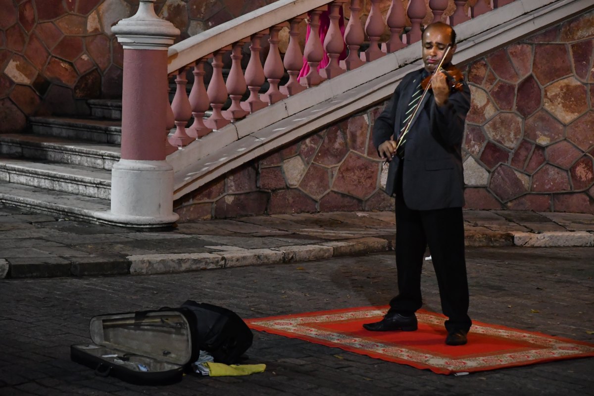 Musicien au pied des marches de l'Opéra.