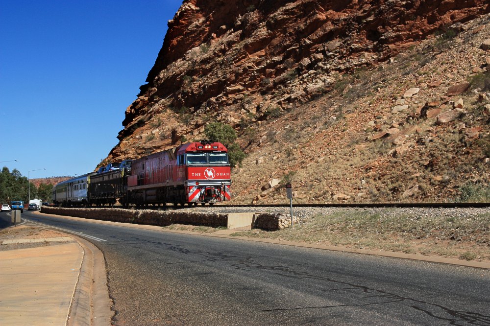 The Ghan going through Heavitree Gap.