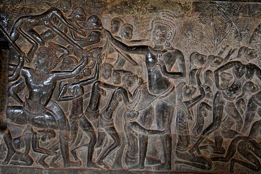 On y voit aussi la victoire de Vishnu sur les démons, les batailles des dieux sur leurs montures et la bataille de Lanka.